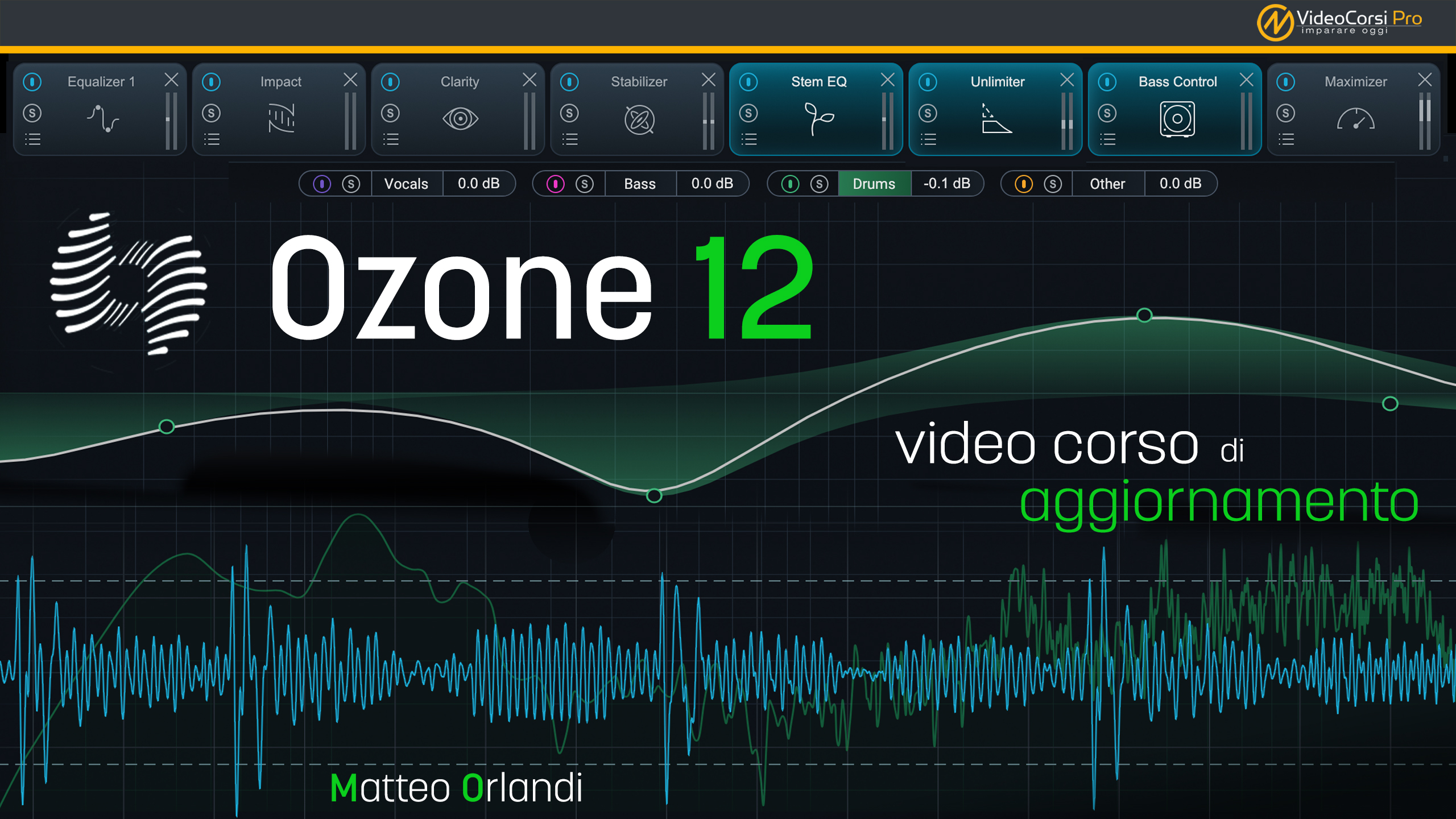Come sempre un corso pieno di esempi pratici utile sia per conoscere le novità di Ozone 12, sia per rivedere la funzionalità di altri plugin della suite di Ozone, indispensabili per ciascuna catena effetti.